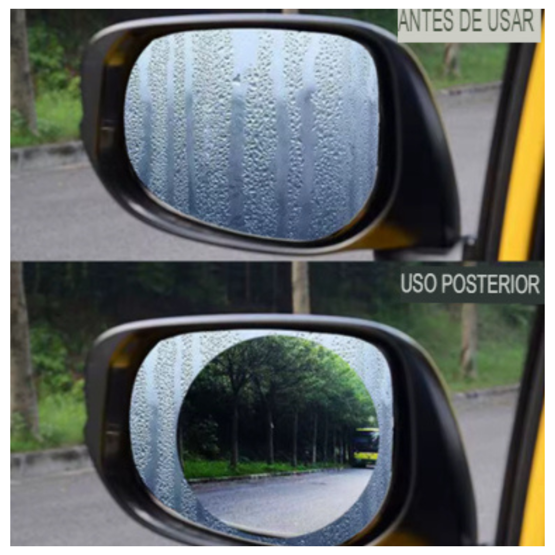 Mejora la seguridad y el rendimiento de tus espejos retrovisores con nuestro 2 x Protector de Auto Antiempañante (Anti-fog). Este conjunto incluye dos unidades de película impermeable para el espejo retrovisor, que son cejas de lluvia para el espejo lateral, proporcionando una solución completa para mejorar la visibilidad, protegiendo tus espejos.