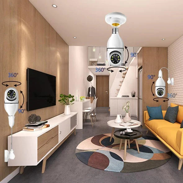 Esta cámara se puede instalar utilizando una base de bombilla E27 normal (110 V ~ 240 V), NO MÁS PASOS DE INSTALACIÓN ADICIONALES. Luego, solo necesita conectar el sistema de la cámara al enrutador, abrir la aplicación para configurar la cámara en minutos