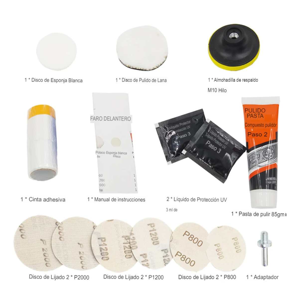 Pulido de Faros - Focos de Auto KIT de Restauración