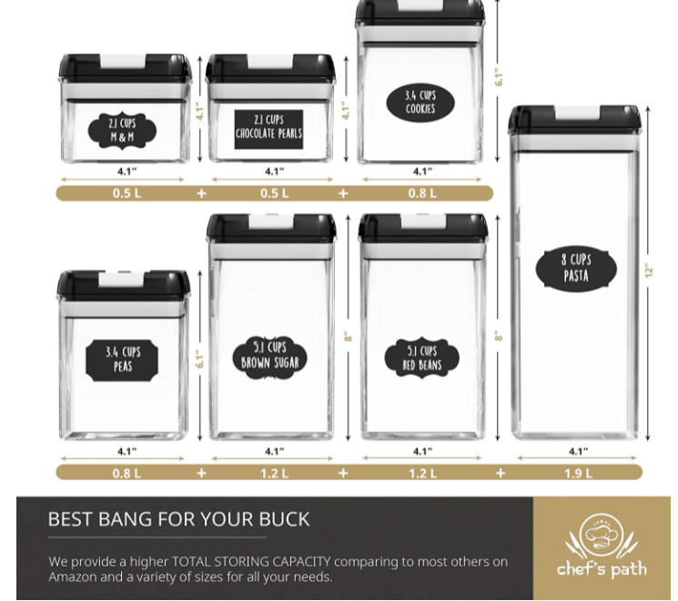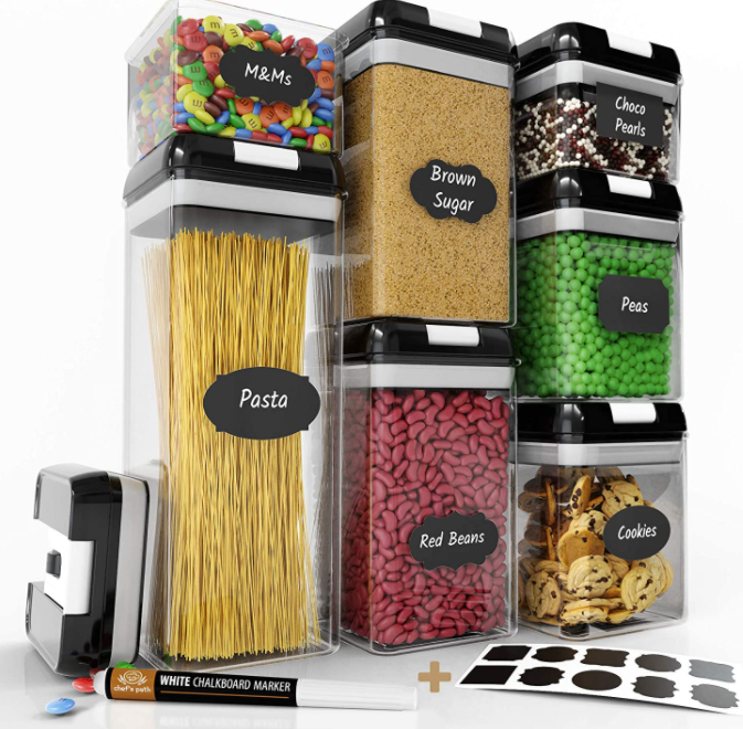 Optimiza el espacio en tu despensa con este conjunto de 7 contenedores de alimentos, herméticos y apilables.